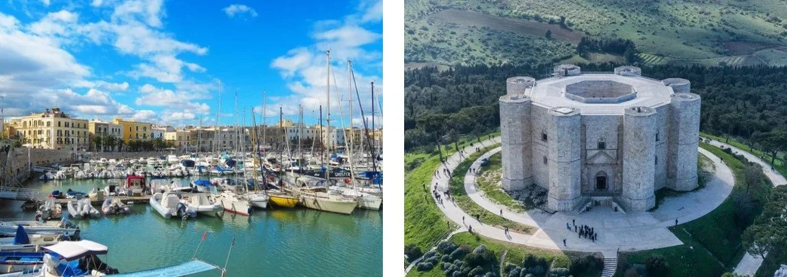 Starting in the seaside town of Trani, we’ll explore the "Puglia Federiciana" landscape, home to the mysterious octagonal Castel del Monte and a cathedral that sits directly on the Adriatic shore. This area is famous for the rare Moscato Reale di Trani, a protected wine grown in calcareous soil that you will taste alongside local coastal cuisine.
