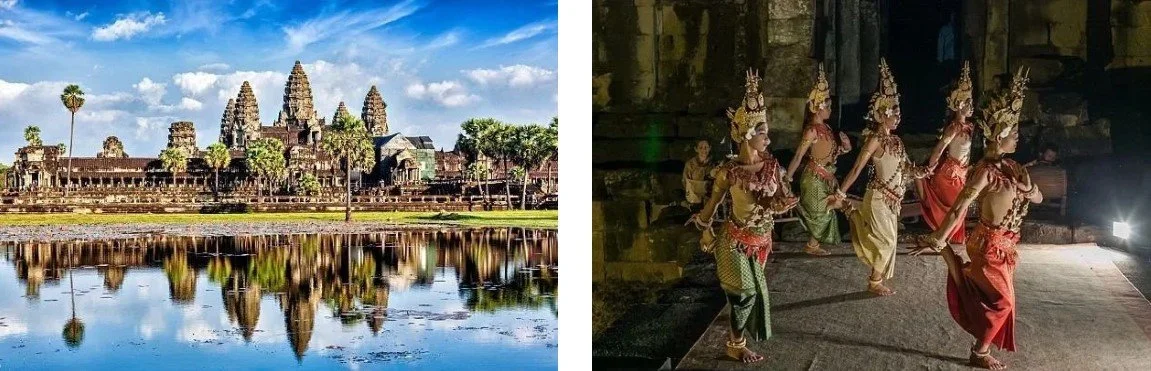 Imagine standing at sunrise before the towers of Angkor Wat as the sky turns gold and the jungle slowly wakes around you.