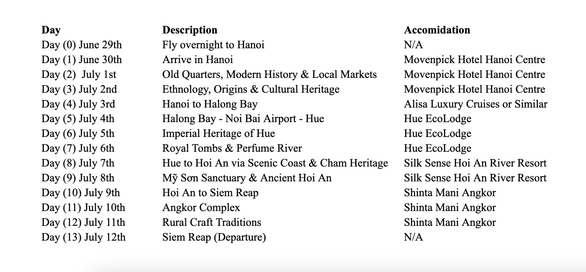 Day 0: Fly overnight to Hanoi, Monday, June 29th, 2026